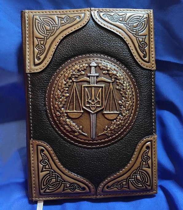 Блокнот виконаний у вигляді знімною шкіряної обкладинки, декорованого складними 3D-тисненнями (складне багаторівневе тиснення з чорнінням і промальовуванням зображення) всередині і зовні на замовлення, зробленими повністю вручну! Блокнот, який вставлений в обкладинку, - в подарунок.