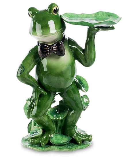 Статуетку цілком природно купити її для прикраси закладу громадського харчування, особливо для сімейного ресторану та невеликого кафе, де привітну жабу побачать усі відвідувачі. Вона також буде доречна на кухні, де нагадуватиме домочадцям, що про кулінарні побажання господині краще повідомляти заздалегідь. Жабу-офіціанта можна подарувати доброму другові чи родичам; як подарунок статуетка підійде для будь-якої урочистості.