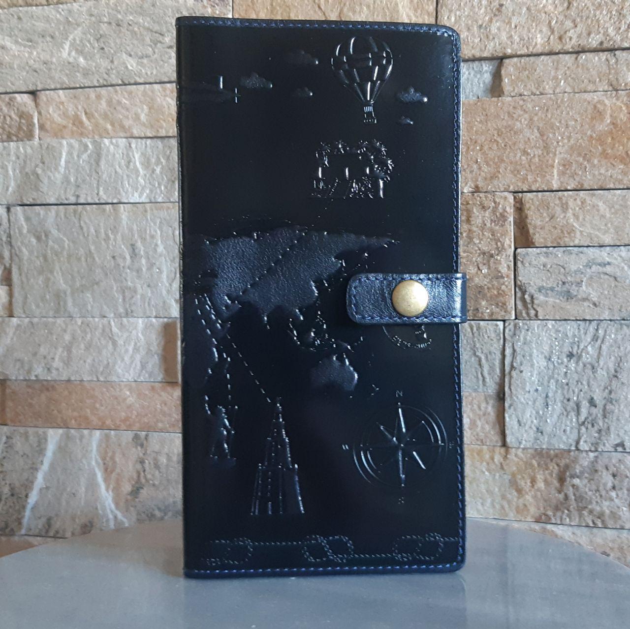 Тревел-кейс для документів "7 чудес світу" на кнопці з натуральної шкіри з художнім тисненням