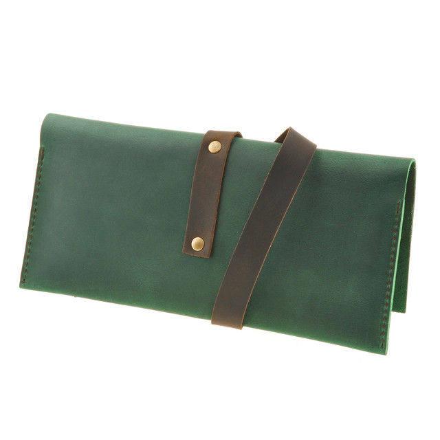У цього холдера для документів, зручний розмір, у ній помістяться посадочні талони (або залізничні квитки, паспорти, гроші і маса інших корисних речей, які повинні бути завжди під рукою у подорожі. Холдер зроблений повністю вручну з шматка дуже щільною (2мм) натуральної шкіри. Закривається він на шкіряний хлястик, який кріпиться двома люверсами, за сумісництвом формують тримач для канцелярського приладдя.